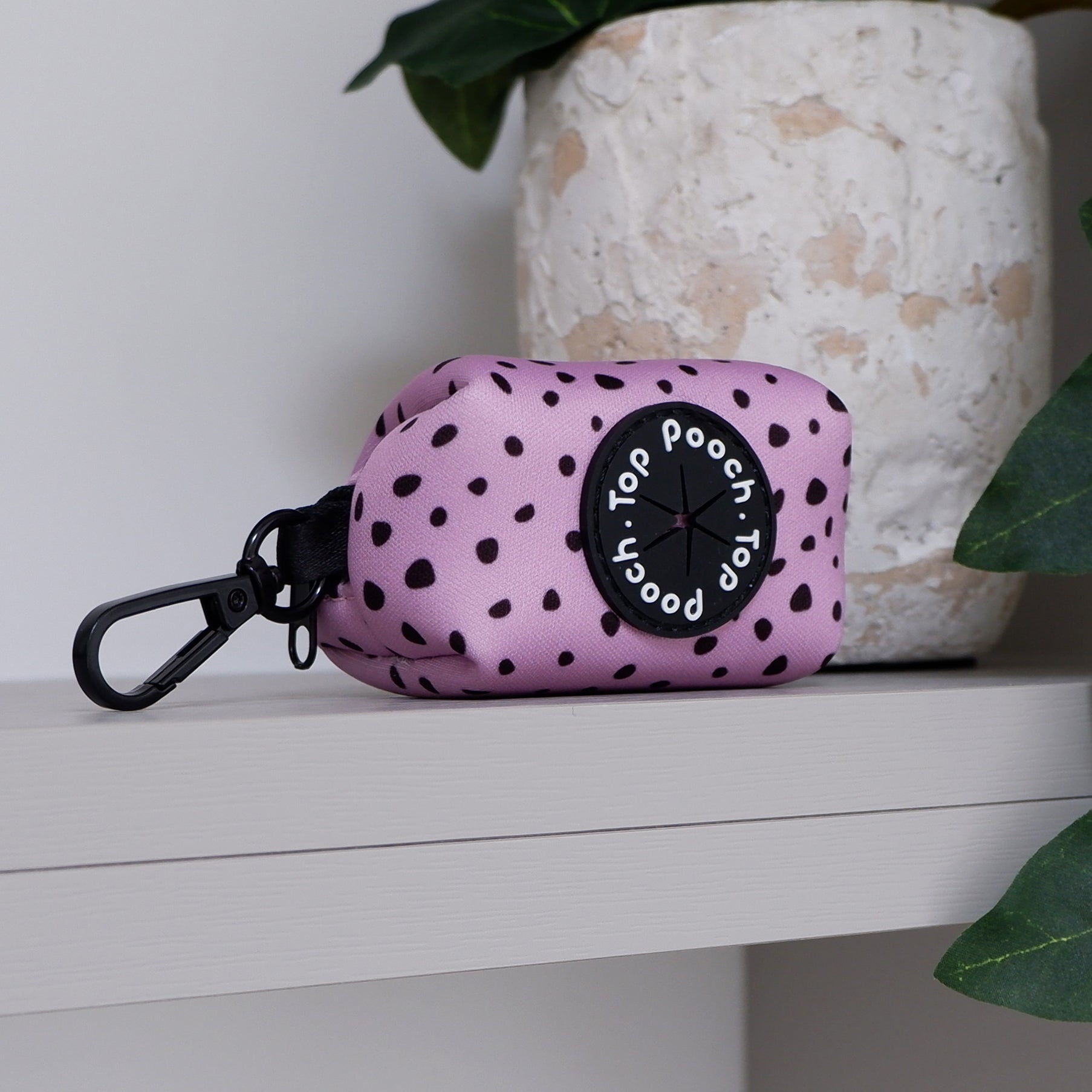 Our compact poop bag holders feature a stylish print to compliment the rest of our 'Soft Harness Collection'.  Simple to use with a handy zip opening to insert your poop bag roll, which is then fed through the rubber dispenser for use when required.  Clip onto your lead or keyring and your ready to to head out for walkies! Can also double up as a treat bag holder.